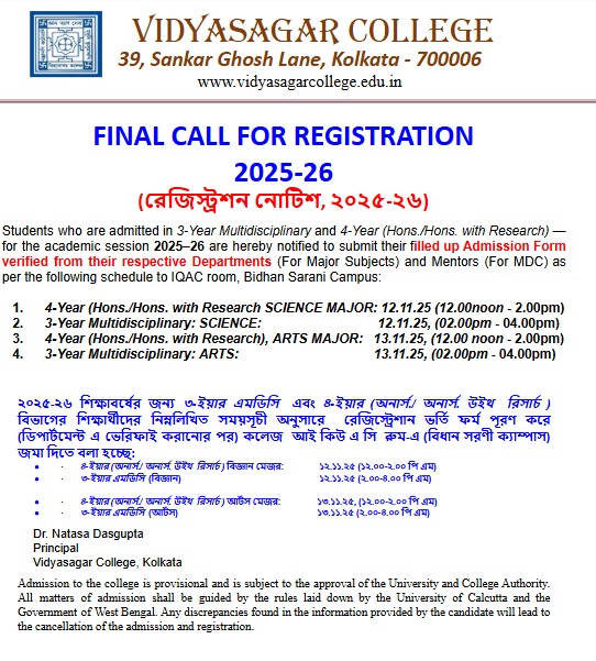 The college is affiliated to the University of Calcutta and thus does not develop any curriculum; it just follows curriculum provided by the University. Read more about Affiliation of the College.