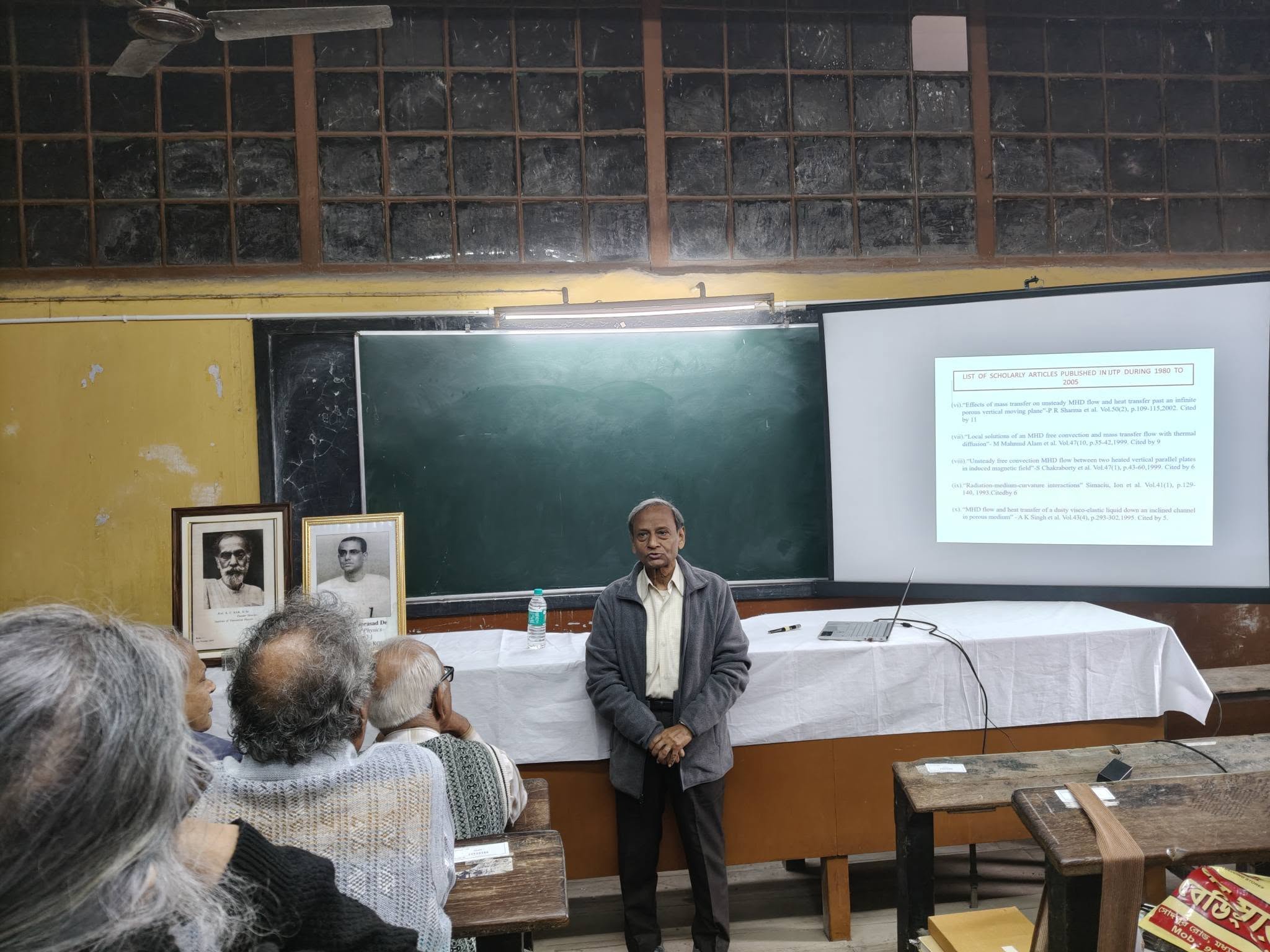 Prof. Haraprasad De memorial lecture was given by Dr. Joydip Mitra, Scottish Church College, Kolkata.Introduction of Prof. Haraprasad De was given by Dr. Sushil Sarkar, an ex-faculty of Vidyasagar College and Secretary, CITP. Introduction of Dr. Joydip Mitra was given by Dr. Saugata Bhattacharyya. The title of Dr. Mitra’s talk was ‘Playing with Dimensions: Math, Myth and Physics’. He gave new informations regarding Prof. De. Then he talked about dimensions in Physics, related history and concepts.