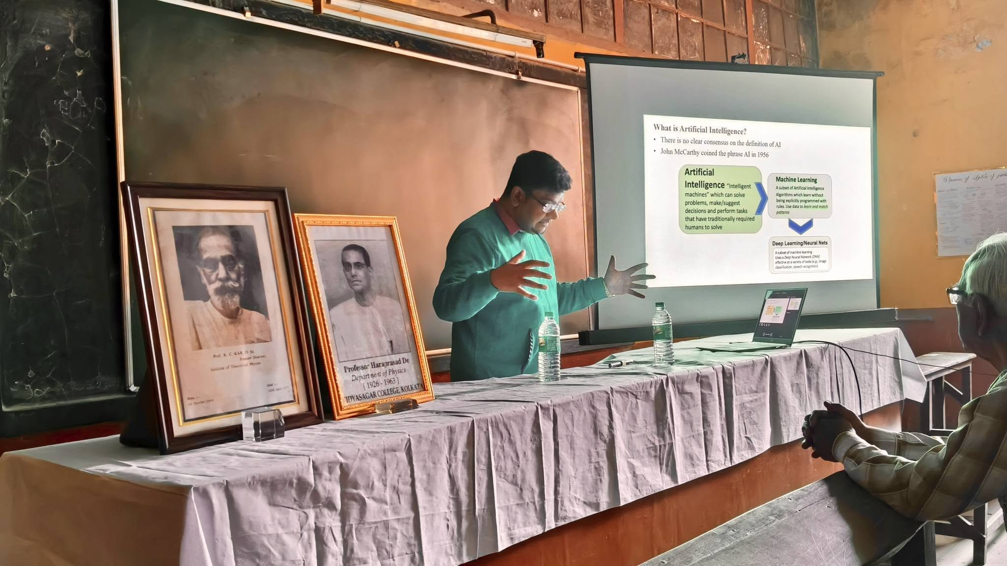 Prof. Kulesh Chandra Kar Memorial Lecture was given by Prof. Swagatam Das, ISI, Kolkata. Introduction of Prof. K. C. Kar was given by by Dr. Prabhat Ranjan Ghosh, a renowned mathematician. Introduction of Prof. Swagatam Das was given by Dr. Mrinal Kanti Chakraborty. Prof. Das talked about ‘Artificial Intelligence’ : its use, problems and application in recent times.
